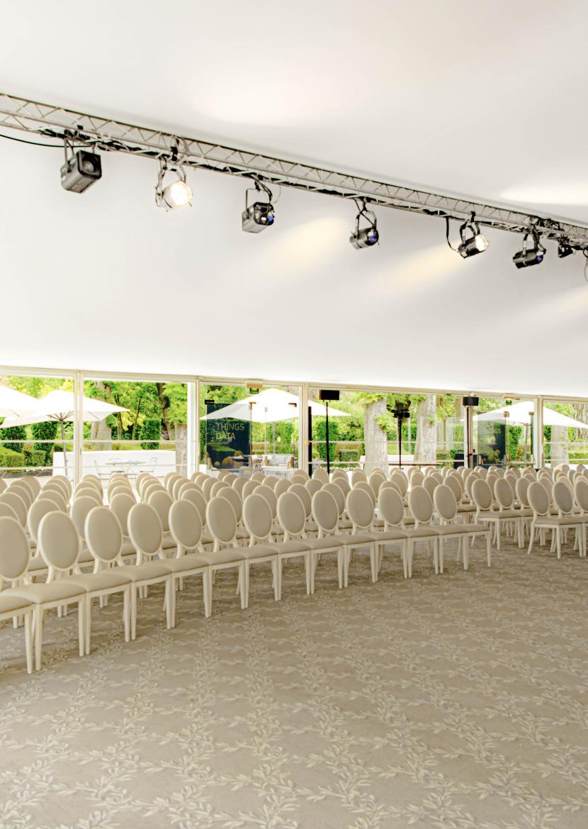 This bright salon opens onto a 50 m² terrace with views of the gardens of Le Pré Catelan, creating the perfect backdrop for your events. It can also connect with the Versailles Salon, providing additional options for large receptions or customized configurations to suit your needs.