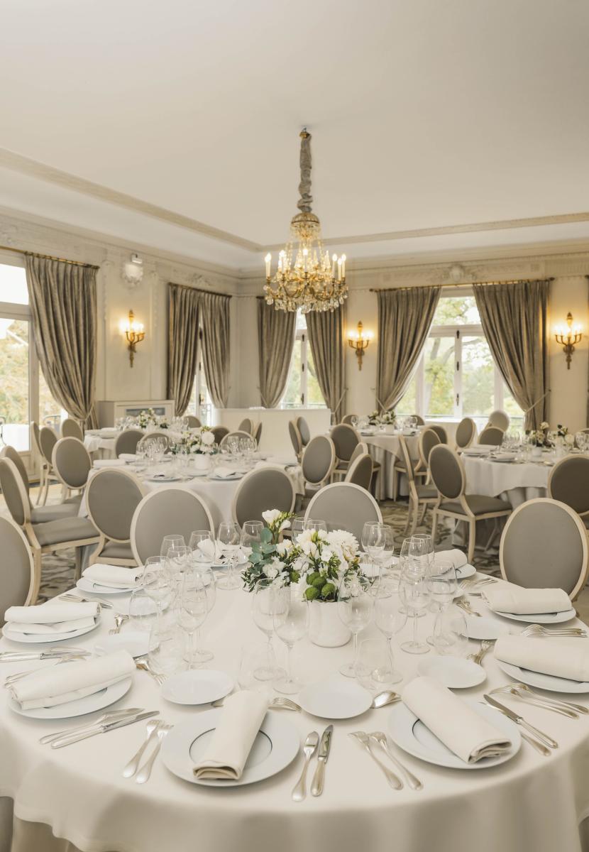 Orné d’un grand lustre à pampilles, de miroirs à cabochons et d’une cheminée en marbre, le Salon Louis XVI allie charme classique et luminosité exceptionnelle grâce à ses vastes fenêtres ouvrant sur un parc enchanteur. Doté d’une terrasse de 40 m², ce lieu est idéal pour des mariages intimes, des cocktails raffinés, ou des réunions d'affaires prestigieuses.